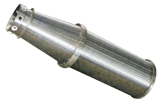 無孔轉鼓內套裝有目心的卸料螺旋,兩者高速同向旋轉的同時,又具有一定的轉速差,該轉速差由傳動系統及差速器產生。懸浮液由進料管進入輸料螺旋內腔。經加速后進入轉鼓內,在離心力的作用下,密度較大的固相顆粒物沉降到轉鼓內壁,形成沉渣環層,并被卸料螺旋不斷送到轉鼓小端而排出轉鼓外,澄清的液體不斷從轉鼓大端的溢流口排出轉鼓外,從而實現懸浮液的固體分離。