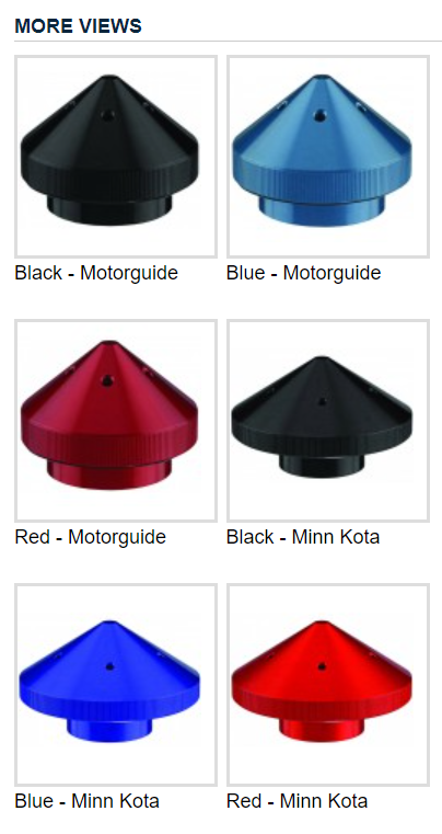 這些型號適合大多數 Minn Kota 和 Motorguide 拖釣船馬達。支撐螺母有多種顏色可供選擇,時尚且極具美感。